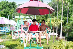 In the shadow of Summit Plummet you'll zoom down a huge 90-foot high-speed water slide.