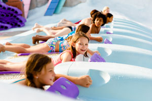 Little ones can make a splash and challenge themselves or simply chill out and cool off at this camp for budding ski patrollers.